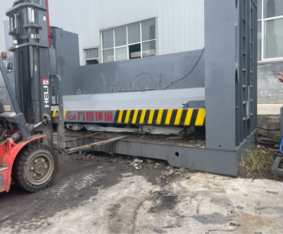 预处理完成后,报废车辆被运送至压扁机的进料口。操作人员根据车辆的尺寸和形状,调整压扁机的进料通道和定位装置,确保车辆能够平稳地进入压扁机并处于正确的位置。