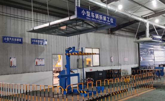 报废车在此工位上完成整车的油液抽排,冷媒回收以及电瓶拆解,真正意义上讲车辆进行无害化处理。